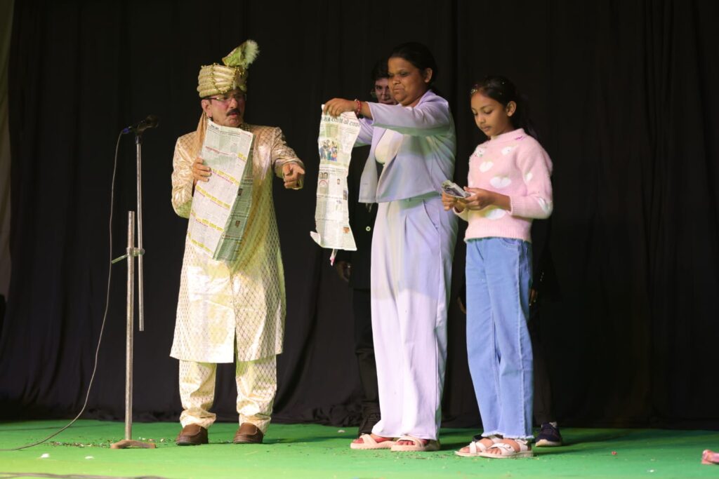 कभी उन्होंने हवा में से रूमाल को कबूतर में बदल दिया, तो कभी खाली डिब्बे से फूलों की बारिश कर दी। बच्चों की तालियों और हंसी से पूरा पंडाल गूंज उठा।