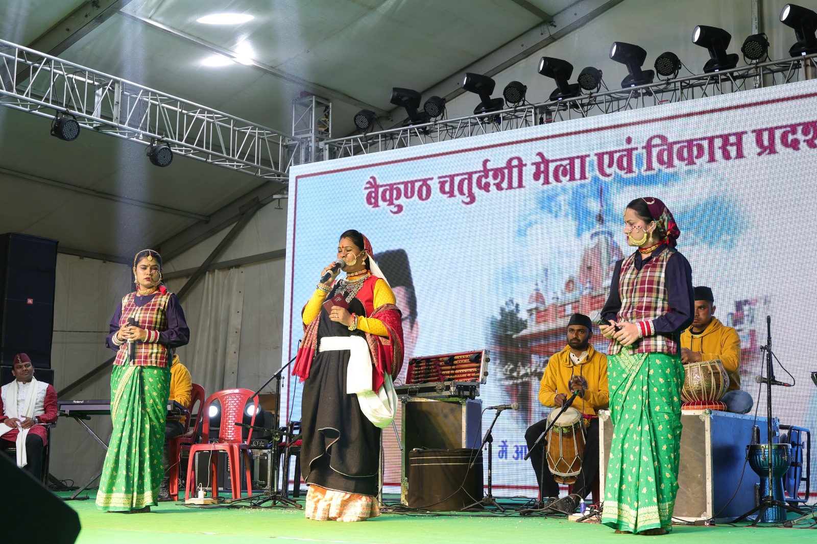 ऐतिहासिक बैकुंठ चतुर्दशी मेले की दूसरी संध्या लोकसंगीत और जादू के रंगों से सराबोर रही। एक ओर उत्तराखंड की प्रसिद्ध लोकगायिका हेमा नेगी करासी ने अपने सुमधुर गीतों से पंडाल में उपस्थित हजारों श्रोताओं को झूमने पर मजबूर कर दिया, वहीं ख्यातिप्राप्त जादूगर एन.सी. सरकार के अद्भुत करतबों ने लोगों को हैरान कर दिया।