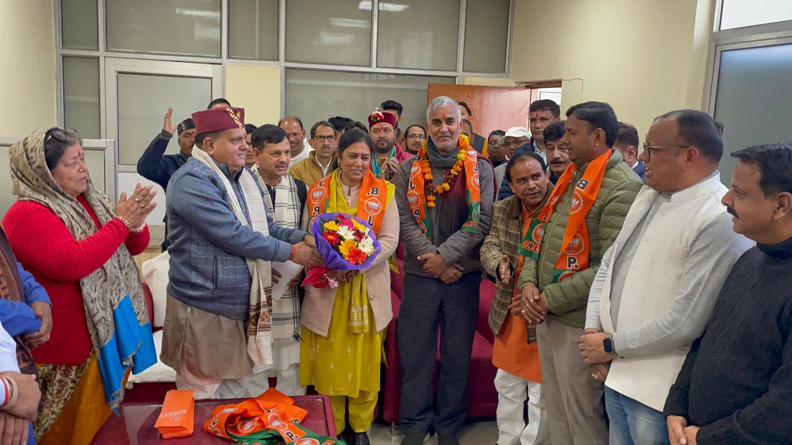 पूर्व पालिकाध्यक्ष विपिन चन्द्र मैठाणी तथा उनकी बहन आशा उपाध्याय भाजपा में हुए शामिल