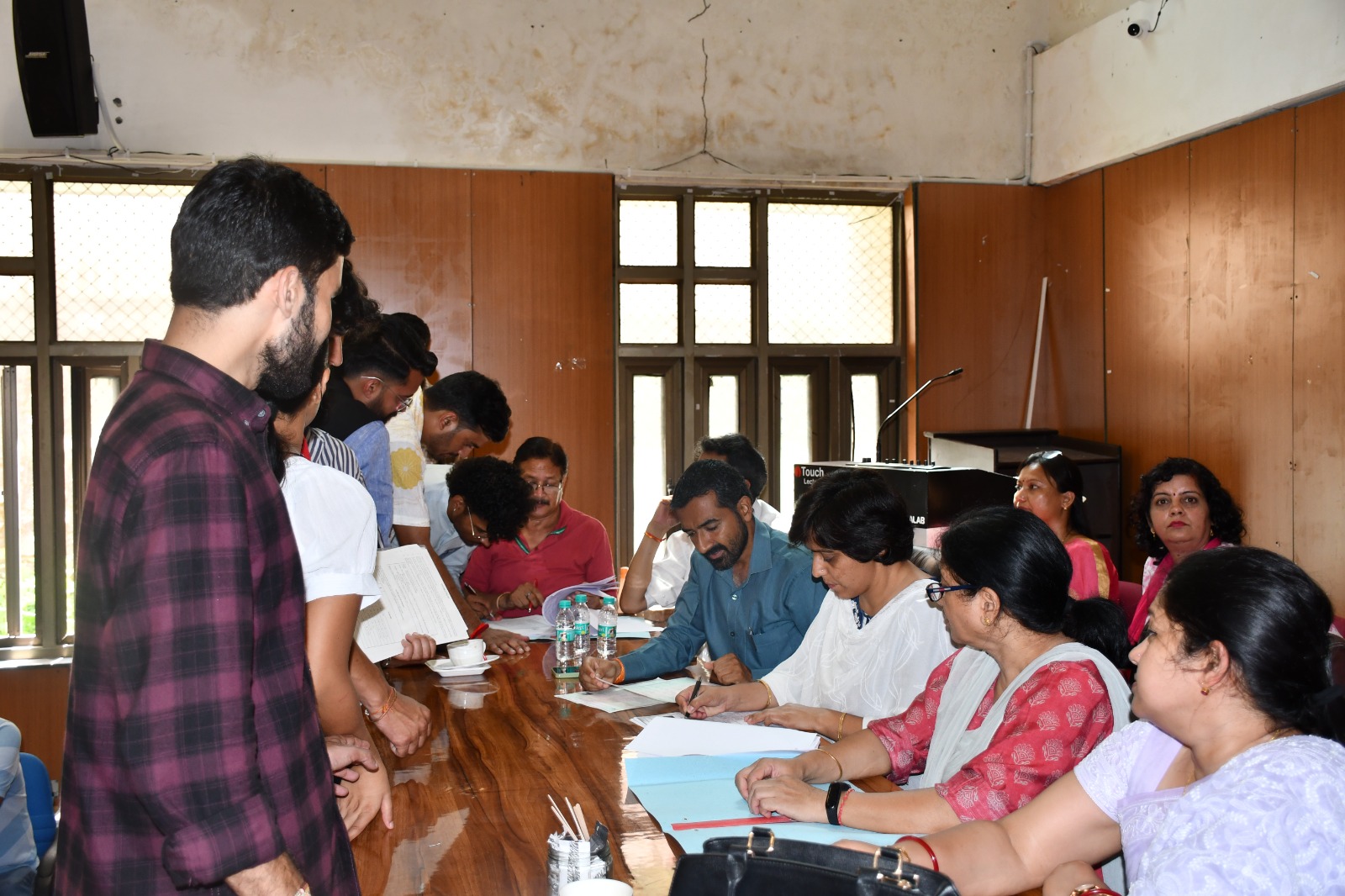 छात्रसंघ चुनाव के लिए नामांकन पत्र दाखिल करते छात्र