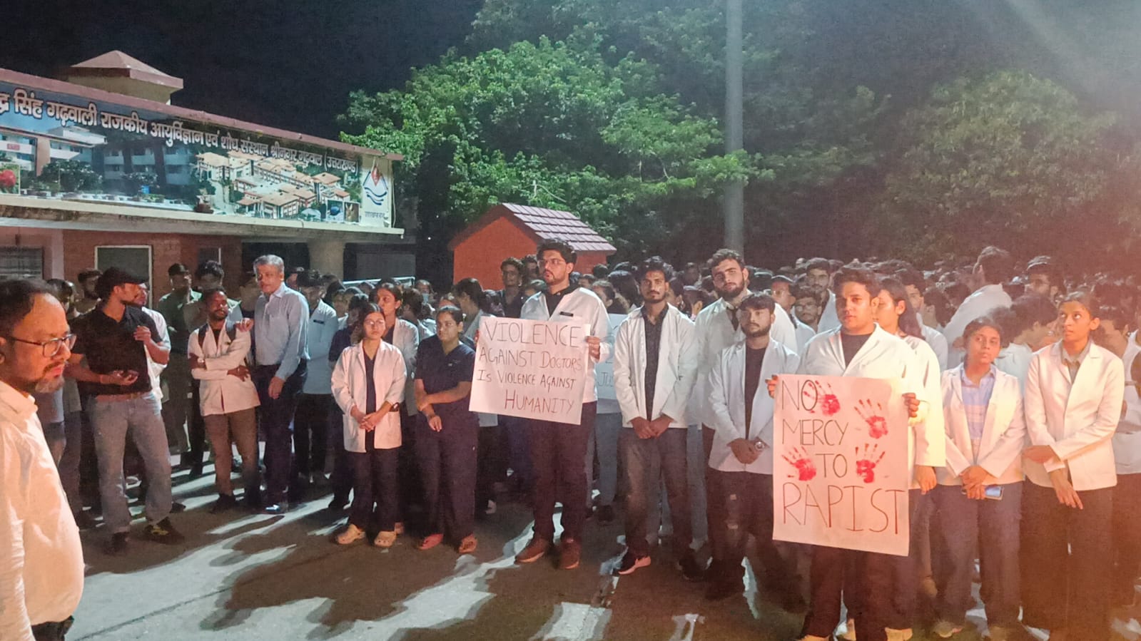 डाक्टरों ने दोषियों को फांसी की सजा देने की मांग उठाई। इस दौरान एमबीबीएस छात्र, संकाय सदस्य, इंटर्न, जेआर, एस आर आदि मौजूद रहे।