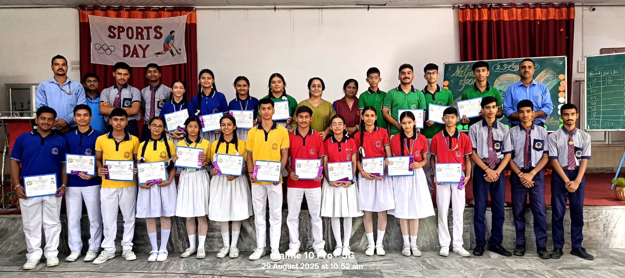 स्कूल हेड बॉय परिपूर्ण बलूनी, स्कूल हेड गर्ल सिमरन जोशी और स्कूल के स्पोर्ट्स कैप्टन अभिनव बिष्ट के द्वारा मेजर ध्यानचंद जी के बारे में बच्चों को बताया गया।