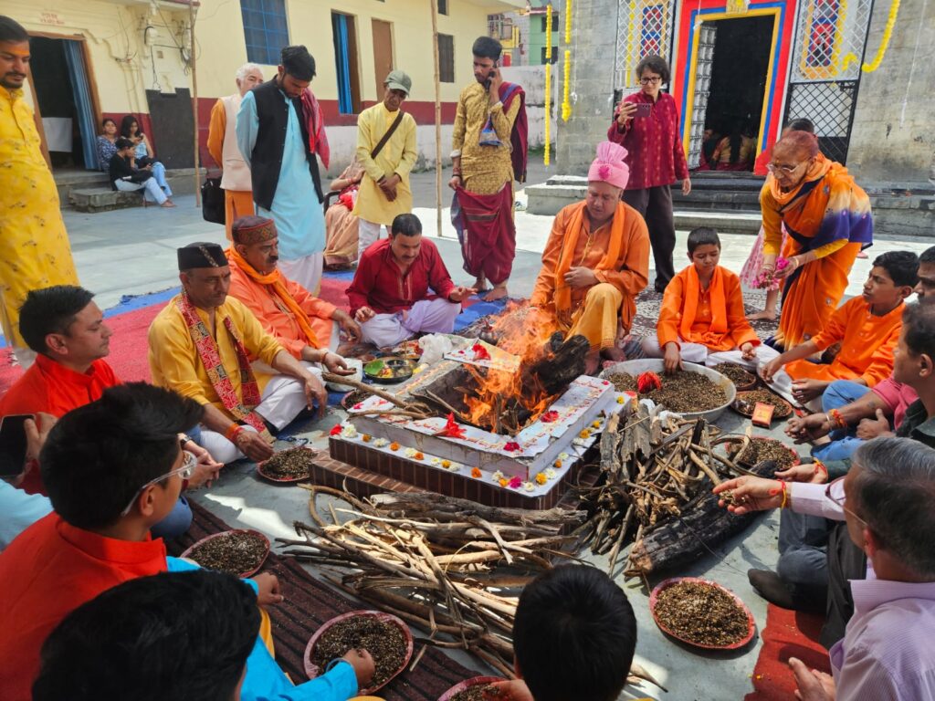 भगवती प्रसाद बडोनी की मंदिर के पुजारी पंडित भगवती प्रसाद बडोनी की अगवाई में स्थानीय लोगों ने स्थानीय लोगों ने और नन्हे मुन्ने बच्चों ने भी हवन में प्रतिभा किया