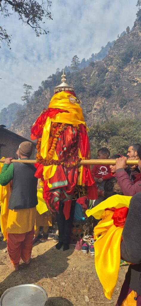 ग्रामीणों ने जाख राजा की डोली का भव्य श्रृंगार कर पुष्प, अक्षत और वस्त्र अर्पित किए।