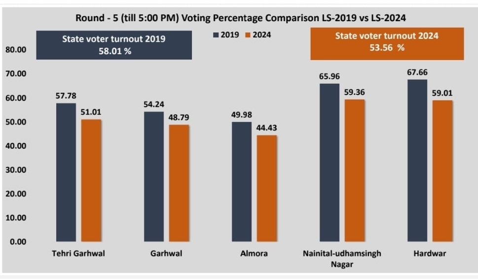 शाम पांच बजे तक उत्तराखंड की लोकसभा सीटों पर हुए मतदान का प्रतिशत
