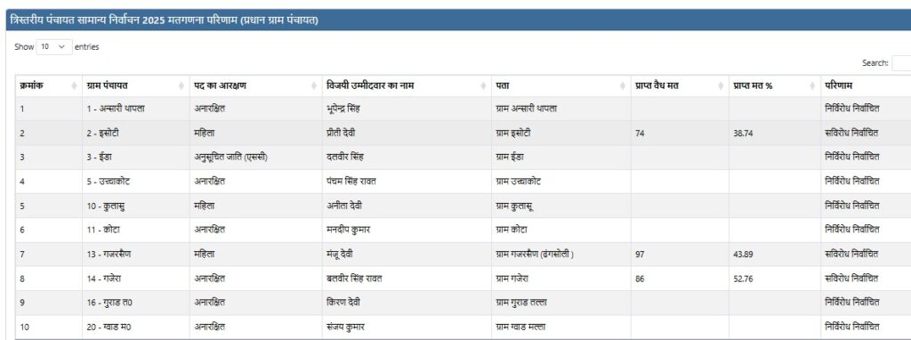 ख़बरें ख़बरों की ख़बर ट्रेंडिंग उत्तराखण्ड पंचायती चुनाव 2025 परिणाम : पौड़ी गढ़वाल लाइव अपडेट Regional Reporter Jul 31, 2025 0त्रिस्तरीय पंचायत चुनाव की मतगणना सुबह 8 बजे से जारी है। लोग अपने प्रत्याशियों की जीत हार पर नजर बनाए हुए हैं।Share this… Facebook Whatsapp Twitter Linkedin Telegram Copy Regional ReporterWebsite | + postsBio ⮌Regional Reporterhttps://regionalreporter.in/author/admin/अंकिता भंडारी हत्याकांड: जनता की हुई जीत, सीबीआई जांच को मिली मंजूरीRegional Reporterhttps://regionalreporter.in/author/admin/श्रीनगर में पॉलीथीन प्रतिबंध और अतिक्रमण के खिलाफ नगर निगम का सख्त अभियानRegional Reporterhttps://regionalreporter.in/author/admin/गढ़वाल विवि में सिविल सेवा कोचिंग ओरिएंटेशन कार्यक्रमRegional Reporterhttps://regionalreporter.in/author/admin/धार्मिक भावनाएं आहत करने के आरोप में यूट्यूबर ज्योति अधिकारी गिरफ्तार #Panchyatchunav#Paurigarhwalreslut#uttrakhandelection